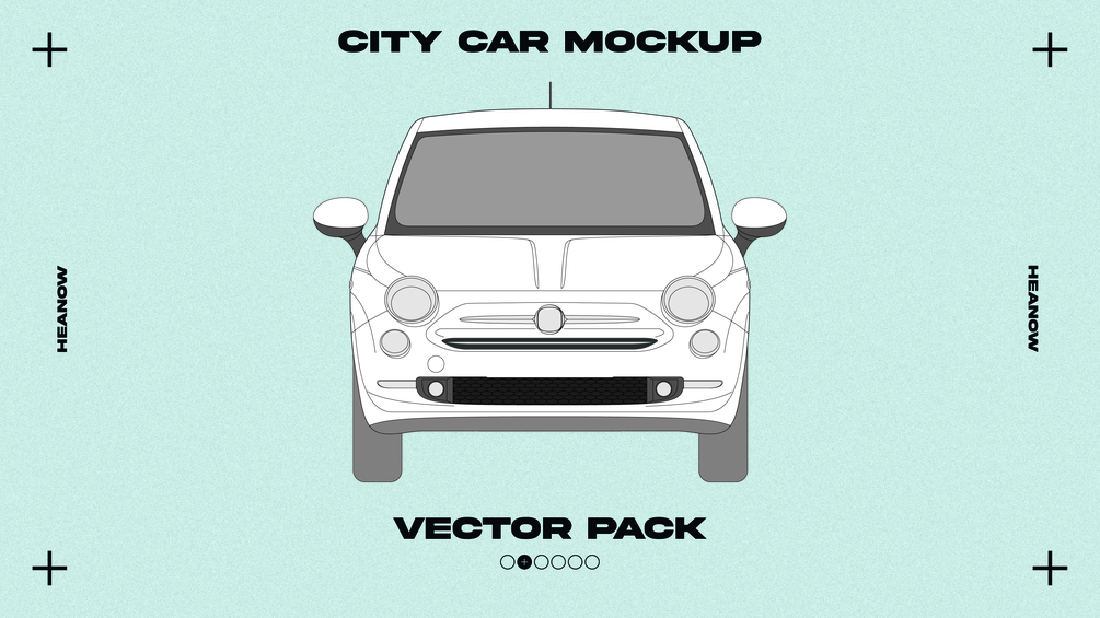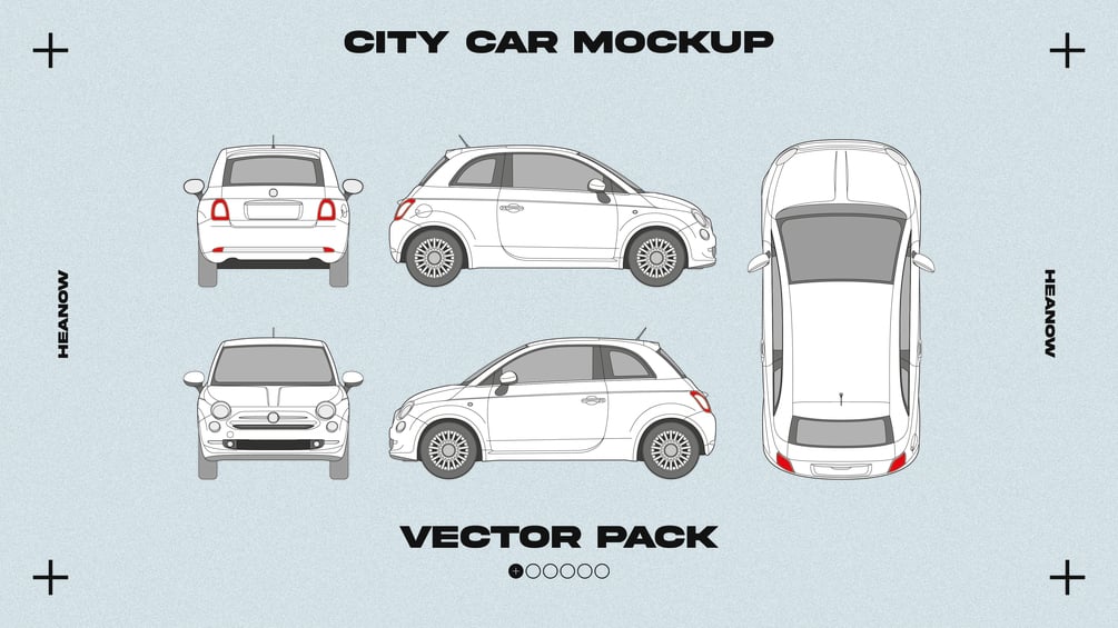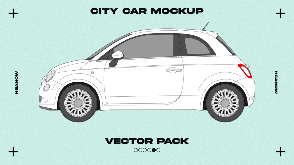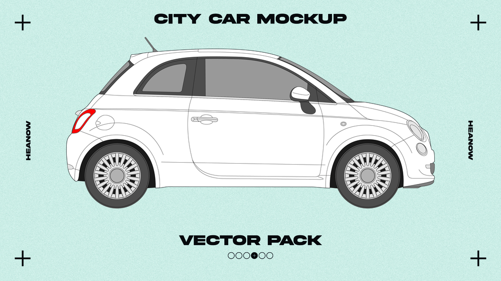 You’ll get a fully editable vector car mockup in .AI, .EPS, and .PDF formats – featuring front, rear, side, and top views of a compact 3-door city car