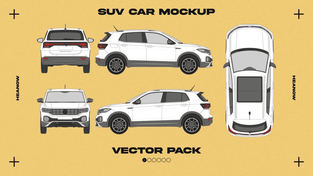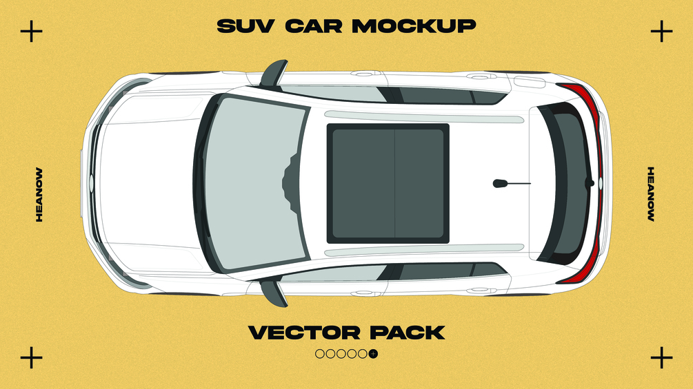 You’ll get a fully editable SUV car mockup in .AI, .EPS, and .PDF formats with 4 views: front, rear, side, and top